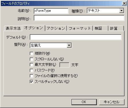 "フィールド"定義に使用するフィールドツールダイアログの入力欄のうち、本製品が対象とする項目について説明します。